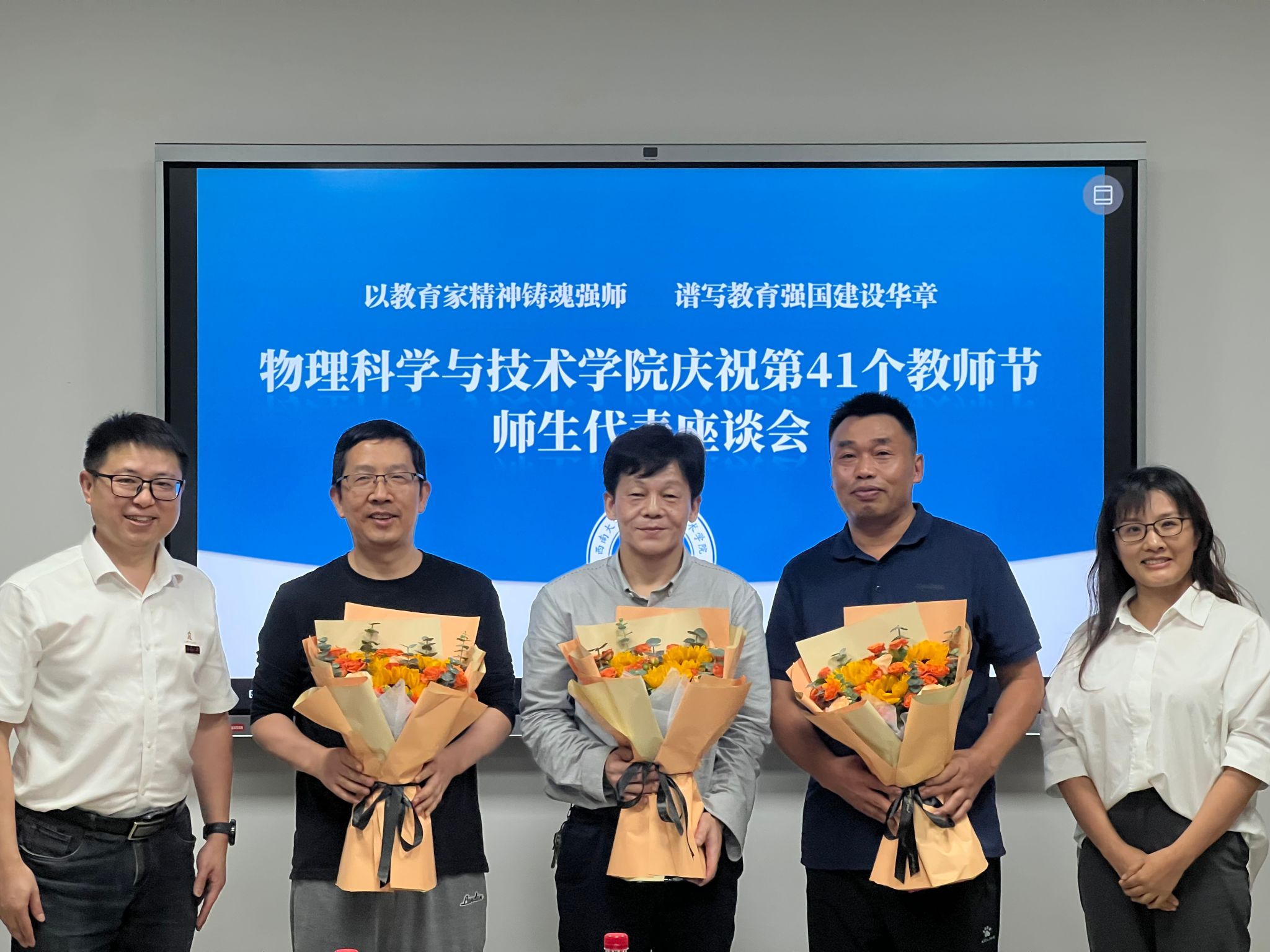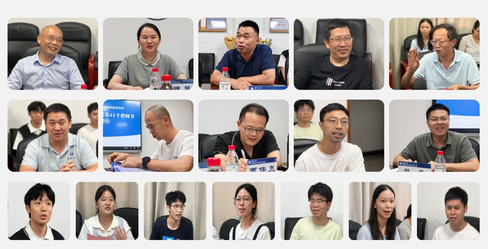 9月10日下午,大发快三 在物理大楼东附楼二楼会议室召开庆祝第41个教师节师生代表座谈会。本次座谈会以“以教育家精神铸魂强师,谱写教育强国建设华章”为主题,大发快三 党政领导、光荣从教30年教师代表、各教研室教师代表及学生代表近20人参会,共话师道传承与育人使命。座谈会由大发快三 党委书记舒刚主持。